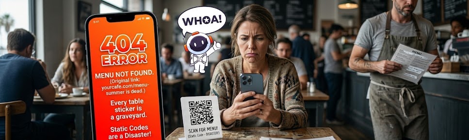 The problem? If you move your menu from yourcafe.com/menu-summer to yourcafe.com/menu-fall, your QR code stops working. Every sticker on every table becomes a “404 Error” graveyard.